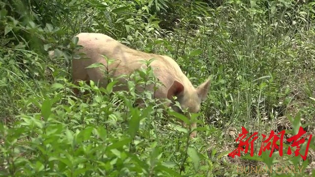 香猪乖巧,易养。每天早上当阳凌文打开猪圈门,香猪嗷嗷叫着排着队奔向山沟、山坡,开始一天的觅食。在这片面积达100亩的林地,几百头香猪藏身其中,有的独自在林子里捡拾掉落地上的花瓣和野果,有的三五成群在树荫下漫步。当记者担心香猪放出去,不会回来,会丢失时,阳凌文胸有成竹的说这个猪很有灵性,生活很有规律,每天都会按时回来。