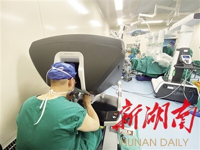 “传统的腹腔镜手术需要至少3个医生,需要长时间站立操作,一台手术下来,肩酸腰胀脚肿。现在主刀医师在手术台外的中控台上坐着操控手术,助手只需在旁间断协助,解放了医生的双手,主刀医生轻松多了,也大大提高了手术效率。”黄秋林介绍,作为目前微创手术的先进工具,“达芬奇”手术机器人极其灵巧的智能机械臂能精准切除病灶,术中出血少,对周围组织器官损伤少,提高了患者术后的生活质量,是实现高精尖手术的杀手锏,尤其对于复杂高难度技术有着腹腔镜手术无法比拟的优势。黄秋林团队已通过“达芬奇”手术机器人完成了多台高难度的胃肠肿瘤手术,包括机器人完全腹腔镜下全胃癌根治术、机器人腹腔镜下直肠癌根治联合巨大子宫肌瘤切除、机器人腹腔镜结直肠癌根治并标本经肛门或阴道取出术等。南华附一医院还将“达芬奇”机器人广泛应用于泌尿外科、肝胆外科、胸外科、妇产科等前列腺肿瘤切除术、胰十二指肠切除术、肝切除术、胆囊癌根治术、胆管癌根治术、巨脾切除术、腹膜后巨大肿瘤切除术、肺癌根治术、纵隔肿瘤切除术、全胸腺切除术、复杂的子宫肌瘤切除术等手术治疗。